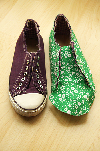 It's funny how everything works out. My original plan was simple and short: no. 1 'fix shoe soles', no. 2 'change fabric from violet to green with brown edging'. It didn't include no. 3 'paint dark flowers on the brown leather'. It included itself in the process. Oh, don't get me wrong I don't mind. Actually, it's the best part of creation, because if the original plan and the outcome doesn't differ I hate to tell you but you work in the factory. Or you have better planning and foreseeing the future skills than I do, but I'm better at adapting in the changed circumstances. Or I don't like to announce something as a failure and try as hard as I can to get out of this mess that a sheep would be alive and wolf satisfied. Gosh, it begins to sound too twisted...What I was trying to say, that when process is creative all the way until the end not just plain old technicality I'm really pleased.